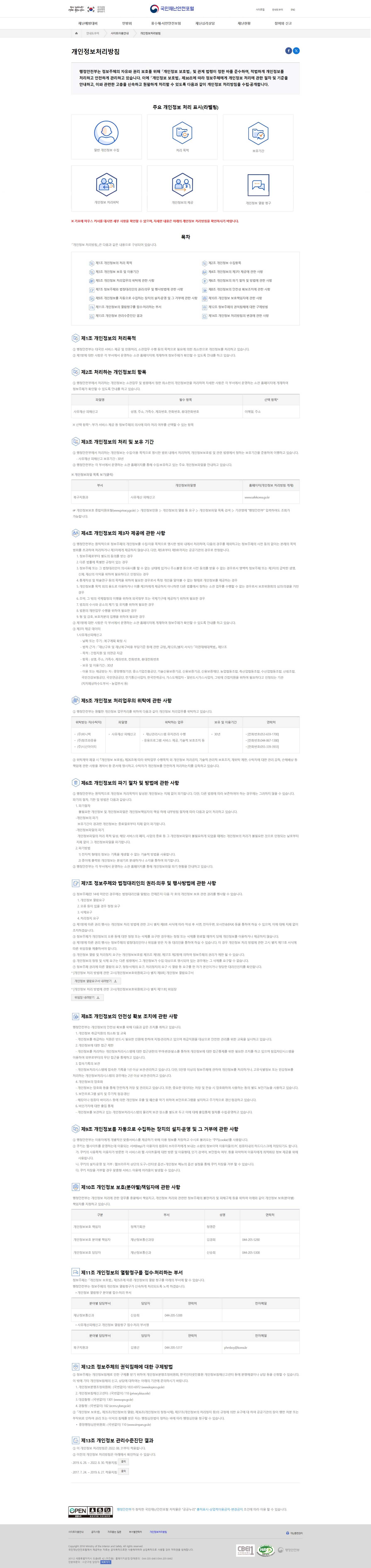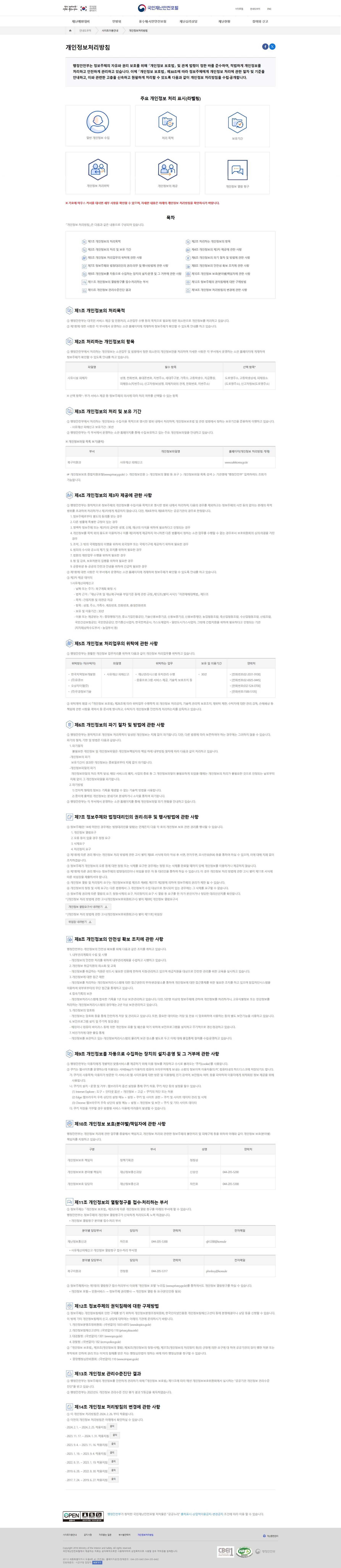 - ② 제1항에 대한 사항은 각 부서에서 운영하는 소관 누리집에 게재하여 정보주체가 확인할 수 있도록 안내를 하고 있습니다.