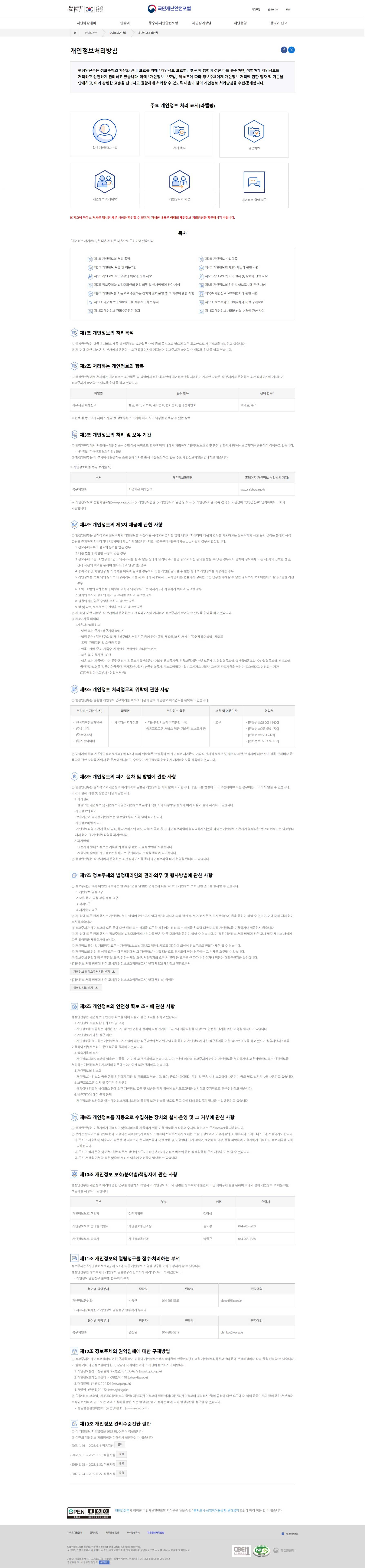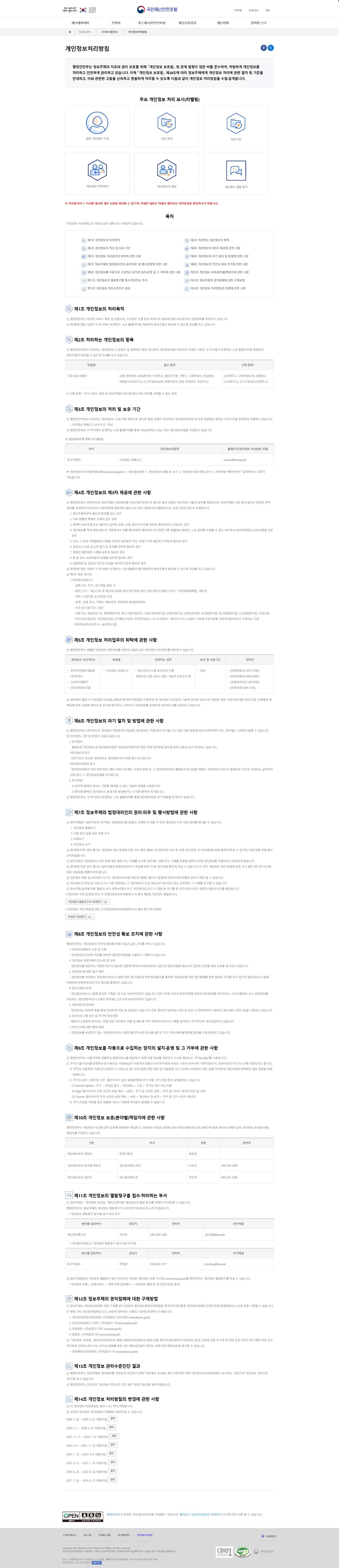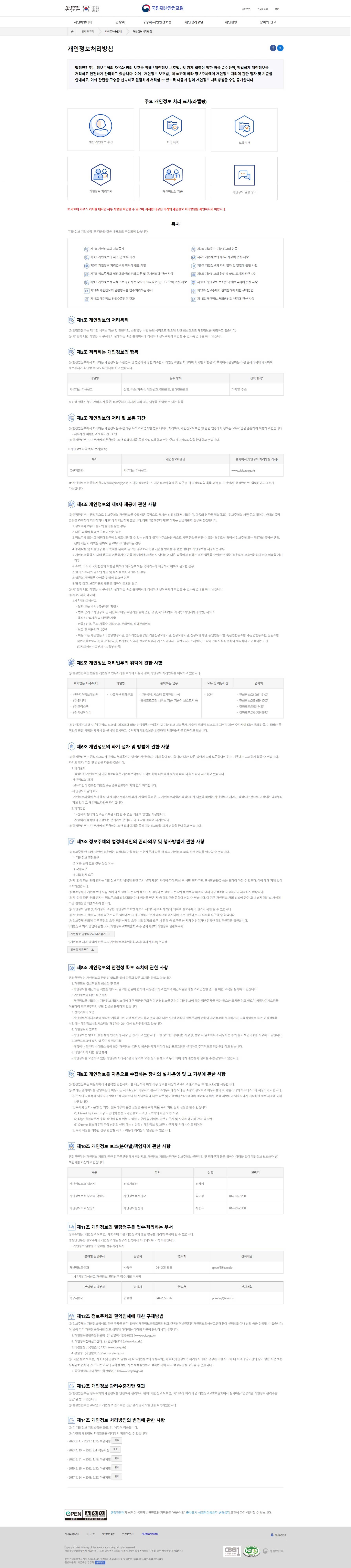 - ② 제1항에 대한 사항은 각 부서에서 운영하는 소관 홈페이지에 게재하여 정보주체가 확인할 수 있도록 안내를 하고 있습니다.