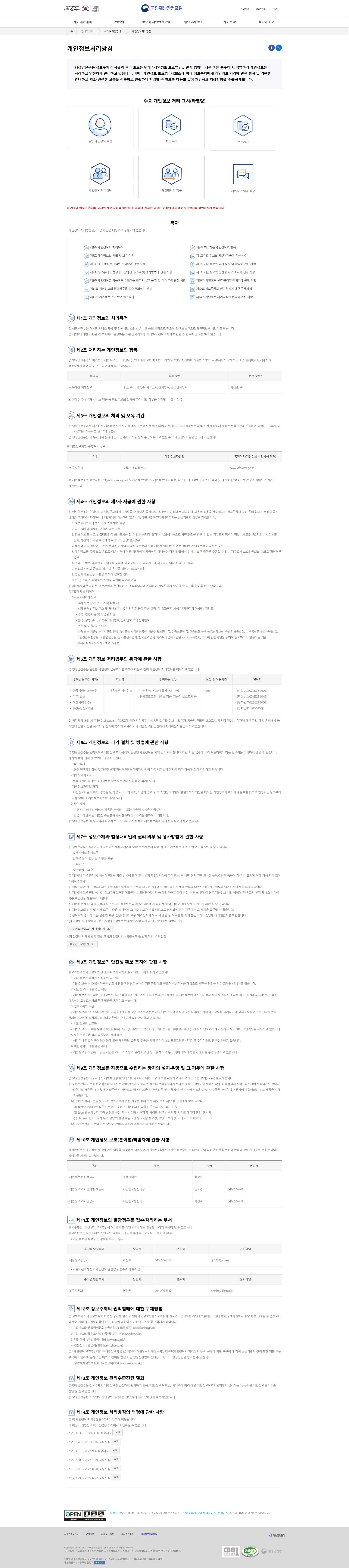 「개인정보 처리방침」은 다음과 같은 내용으로 구성되어 있습니다.
